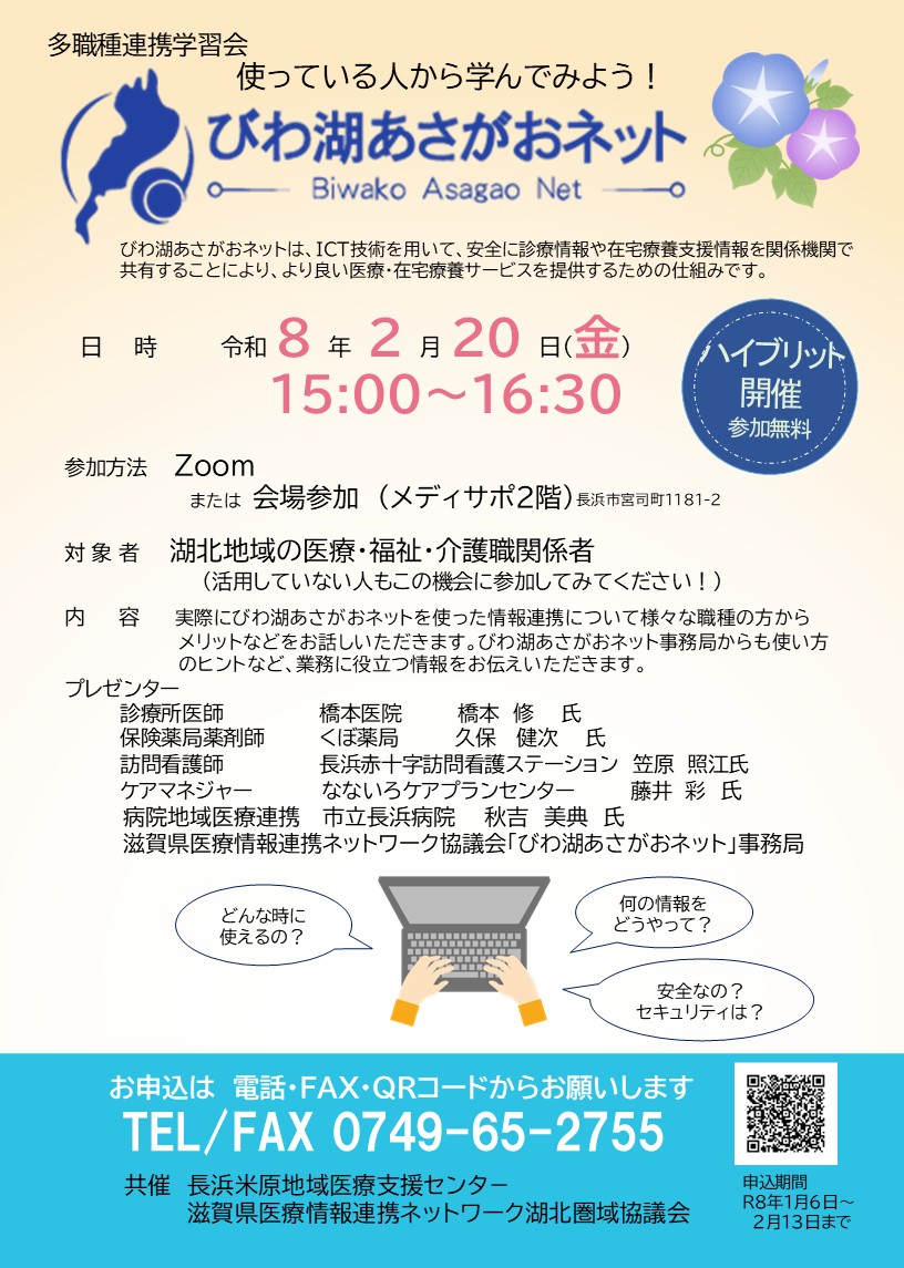 使っている人から学んでみよう!!びわ湖あさがおネット研修会に、Zoom参加希望でお申込みいただいた皆様には、2月16日に参加方法案内メールを送らせていただいています。