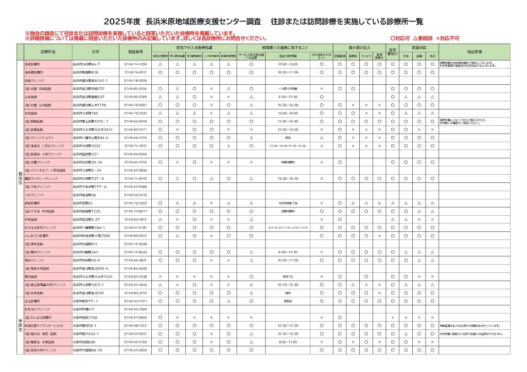 ※当支援センターの独自調査にて、往診または訪問診療を実施しているとお答えいただいた診療所のみ掲載しています。