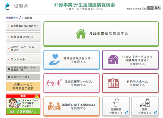 ↓↓↓↓こちらでは滋賀県内の介護事業所の情報検索ができます。↓↓↓↓